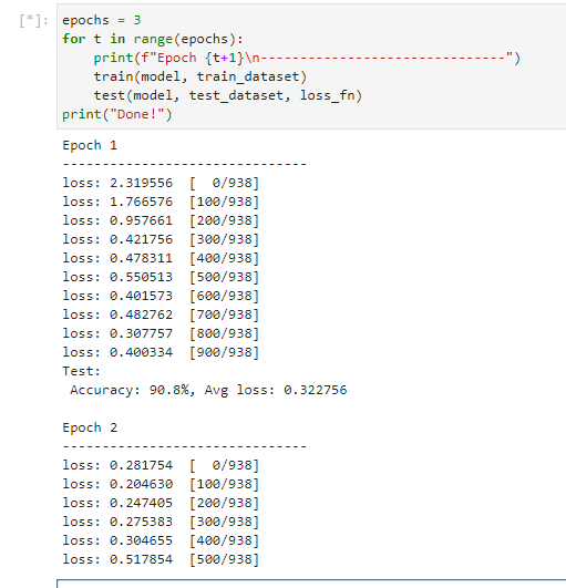 epochs = 3 # 设置训练轮数