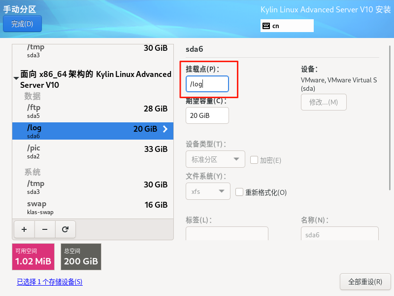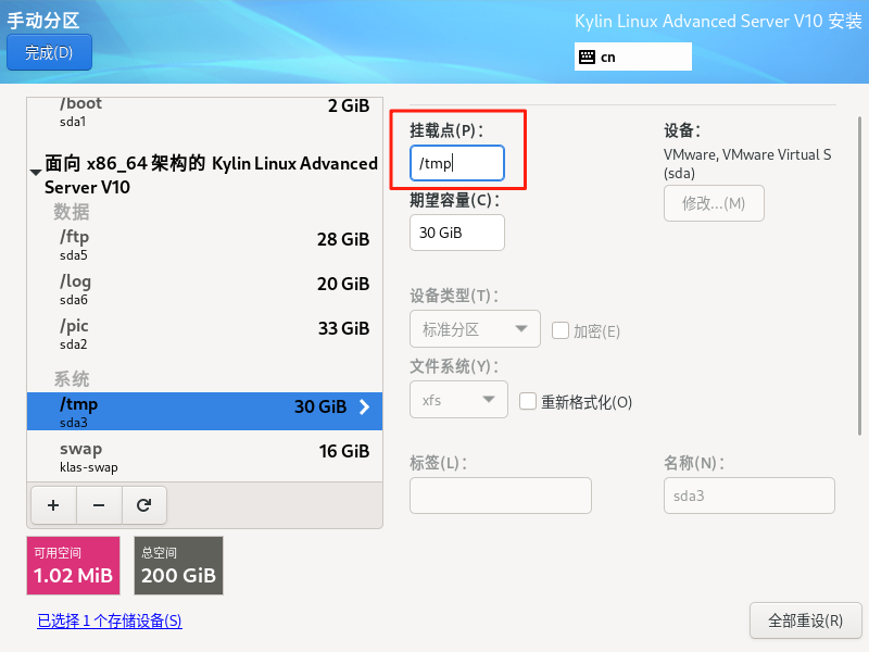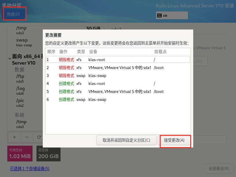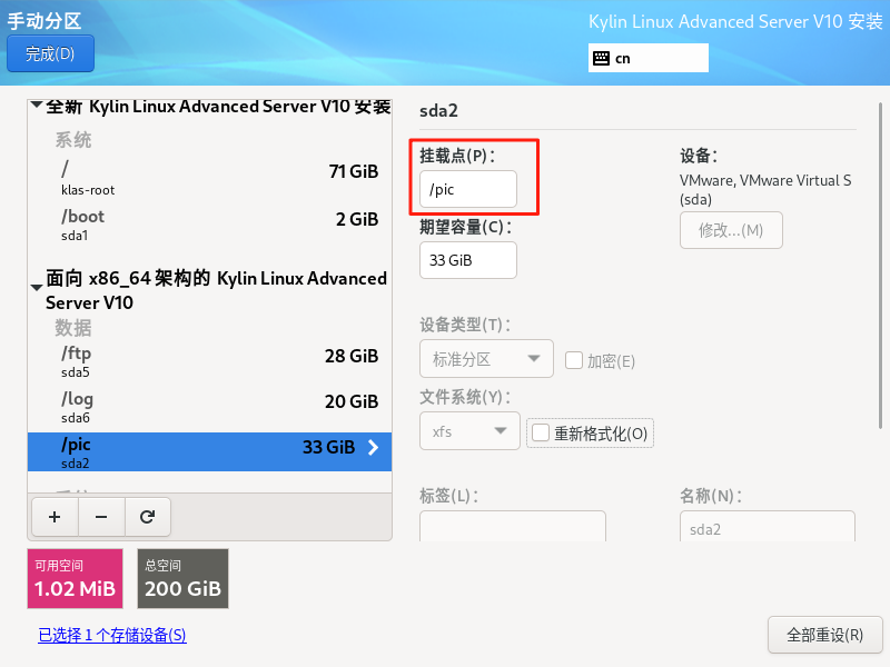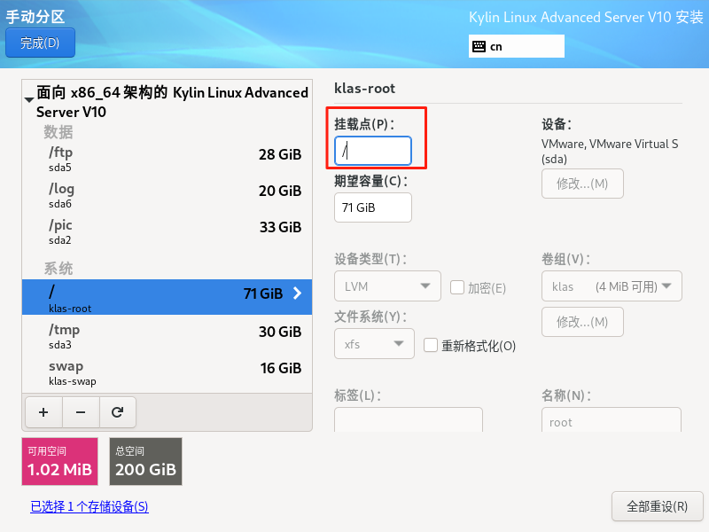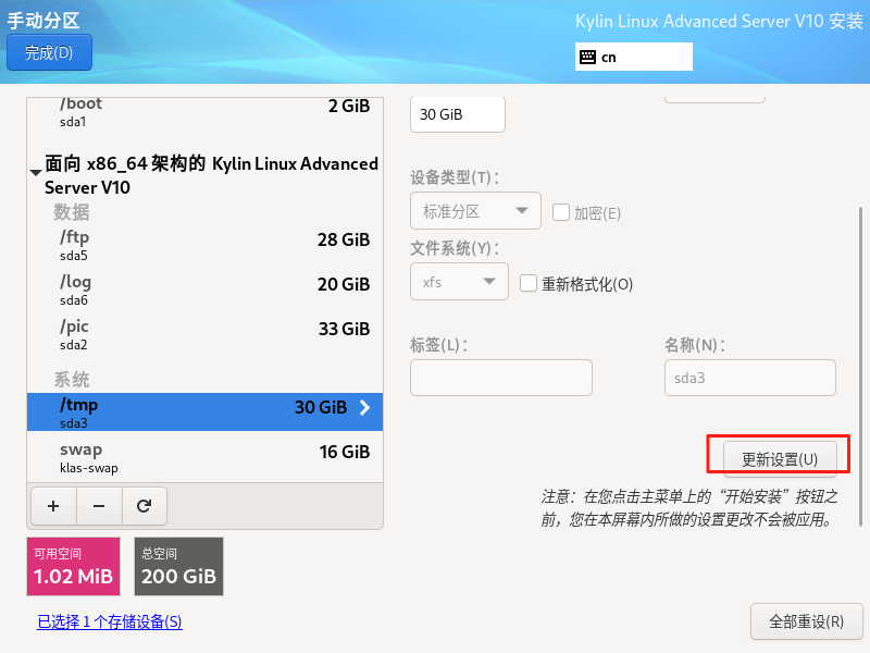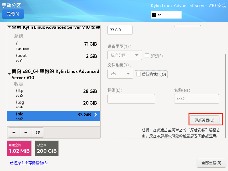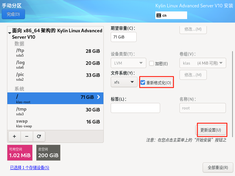 银河麒麟高级服务器操作系统保留数据盘重新安装系统(boot分区,efi,根分区必须格式化)