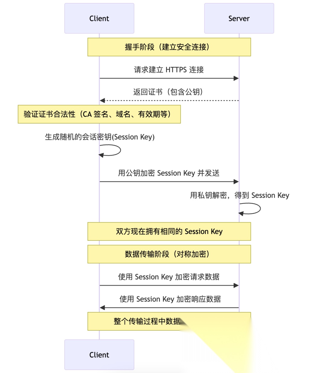 HTTPS加密与JWT鉴权机制详解 1.HTTPS 数据传输加密流程 非对称加密(公钥/私钥)并不直接用于数据传输 • 直接用公钥加密大