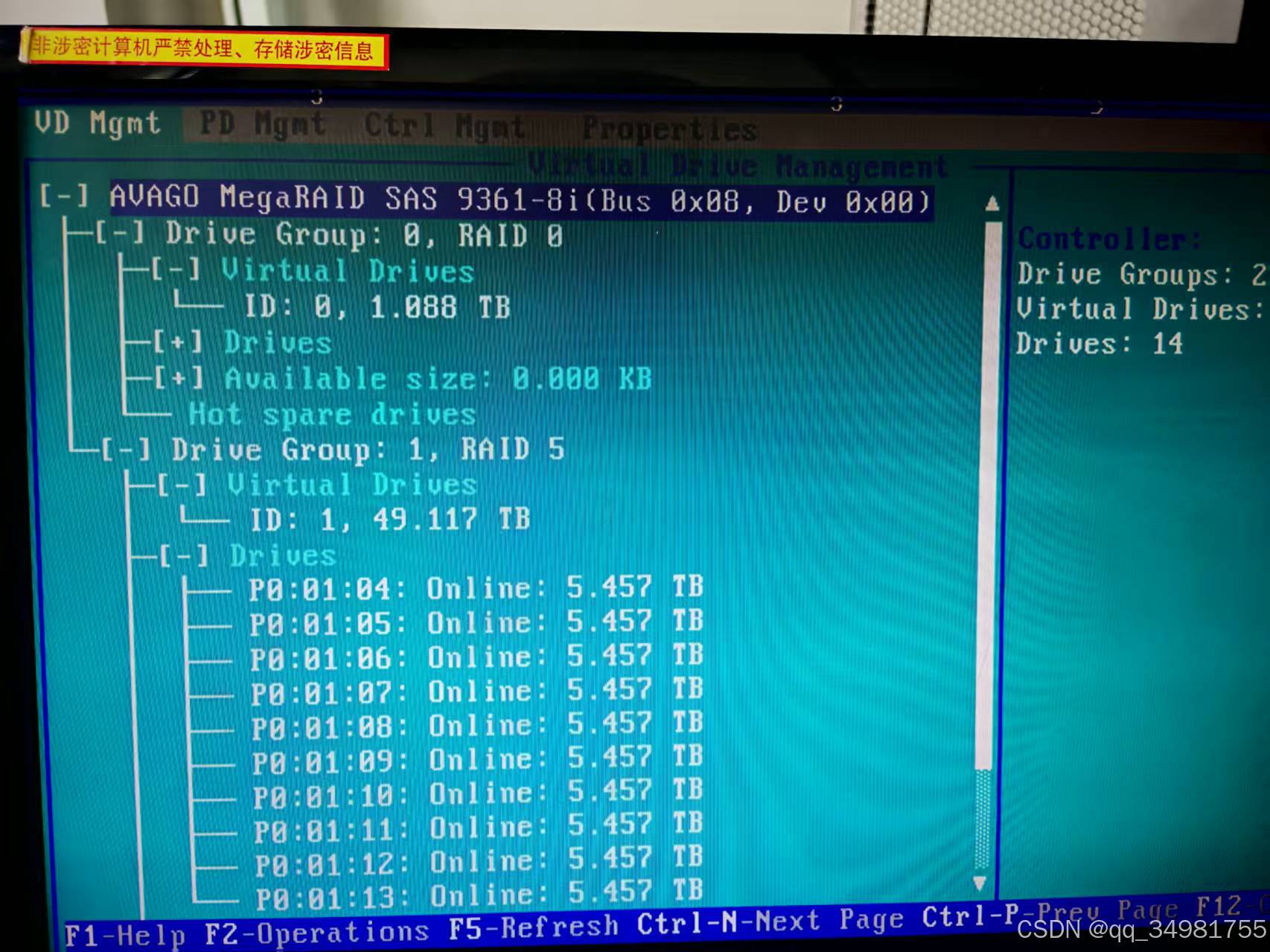 1.服务器开机按ctrl+r 进入 (1) 键盘 可以按上下键 选中  按F2 ,操作 Clear Configuration 清除磁盘 (2)然后继续F2 选中