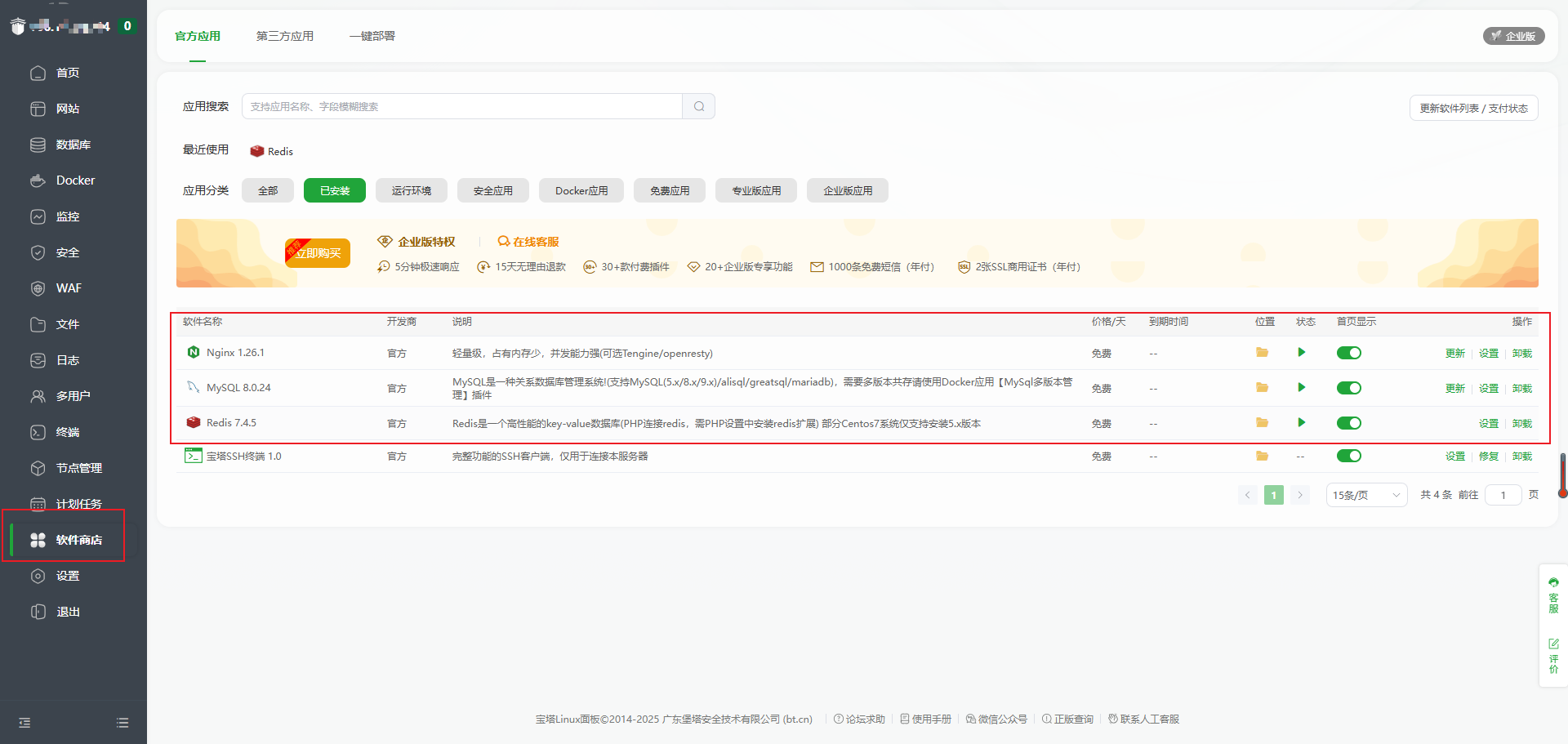 1 安装宝塔 官网地址:https://www.bt.cn/new/btcode.html 复制CentOS安装脚本到SSH终端: [root@instance-yo4hab98 ~]# yum