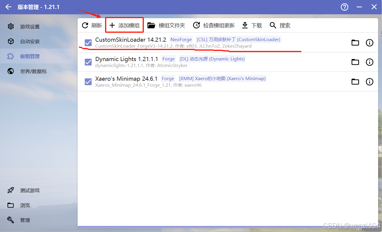 MC版本:1.21.1-forge启动器:HMCL账户:离线模式(即非正版、微软认证等)        首先CustomSkinLoader是一款客户端模