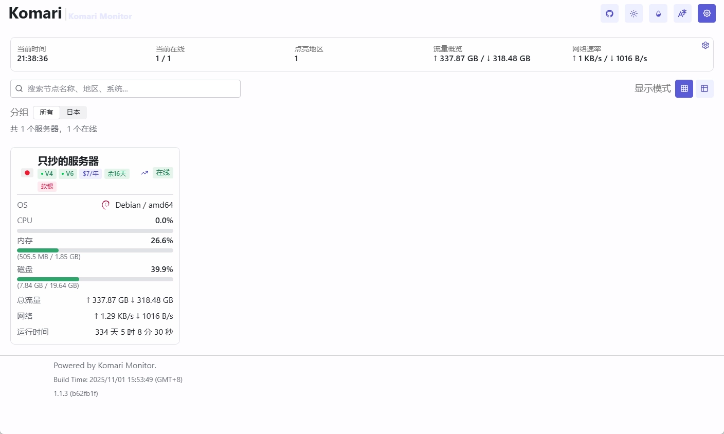 本文最初发布在只抄博客,如需查看最新内容与细节补充,欢迎前往原文链接。 前言 Komari 是一款与哪吒探针比较类似的服务器