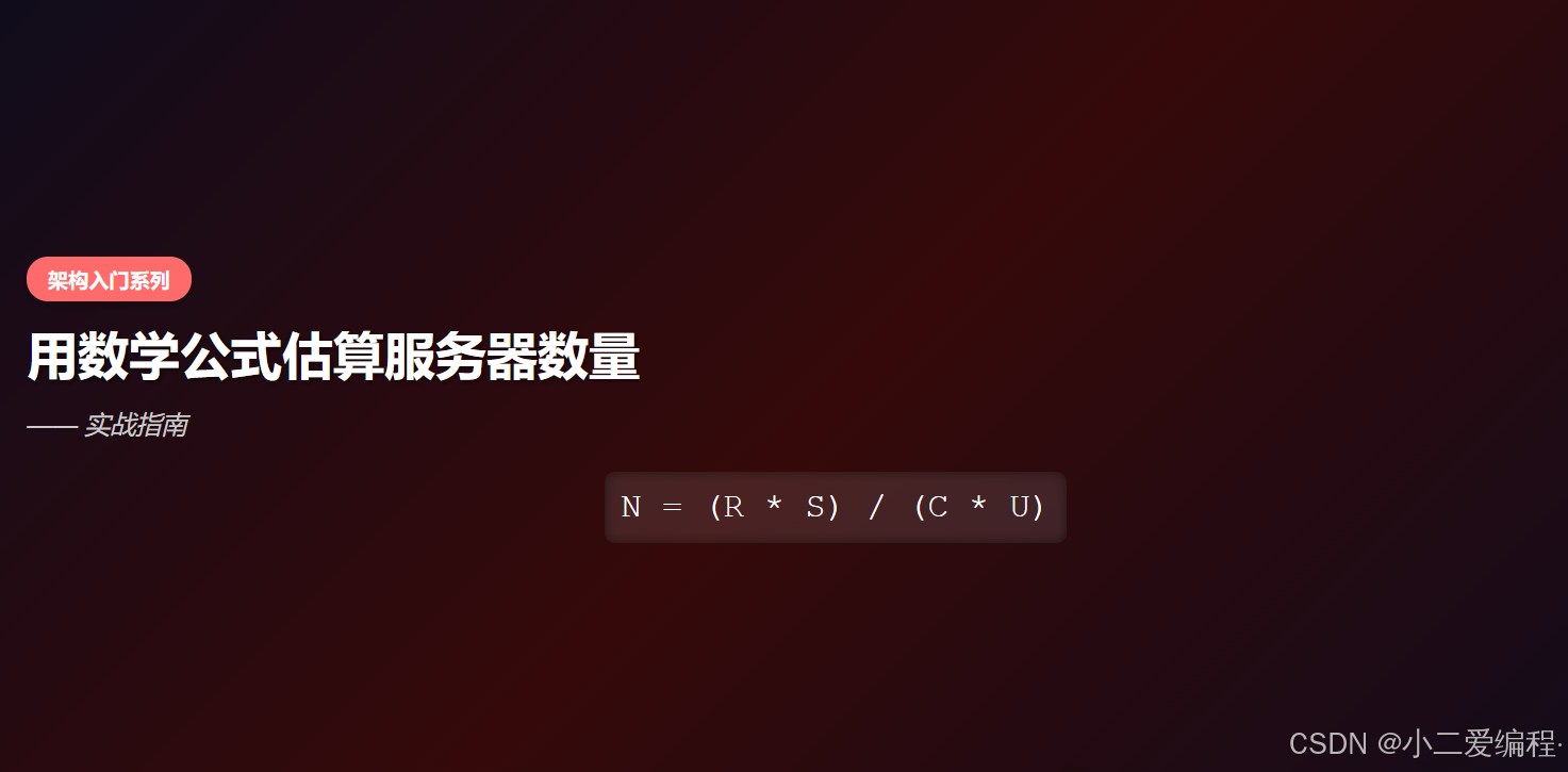 为什么你需要这个估算方法 当你你第一次领导被问到“这个系统需要多少台服务器”时,是不是有点懵?作为刚入门的架构师或技术人
